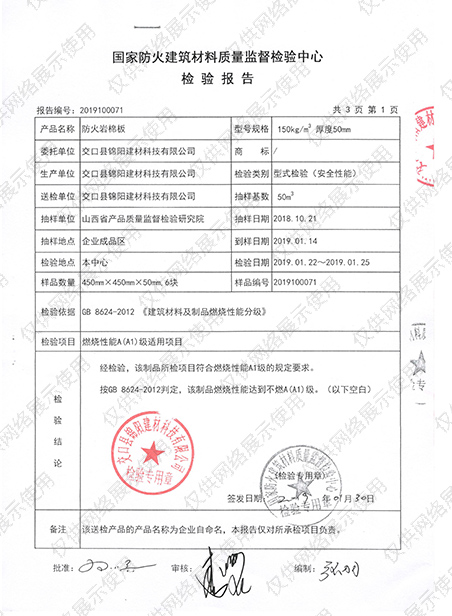 防火巖棉板檢驗報告